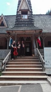 Pod Kościółkiem Młodzi w tempie ekspresowym "wskoczyli" w odpowiednie stroje, my zrobiliśmy szybką akustyczną próbę (drewniane małe wnętrze było pełne uroku i całkiem przyjemnie nam się grało).